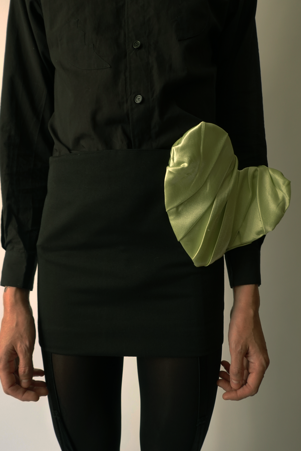 Long sleeves tee with pointy shoulders and upcycled bra straps