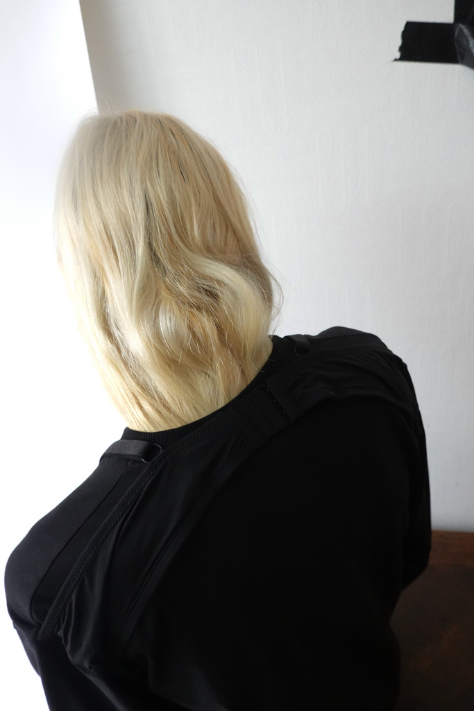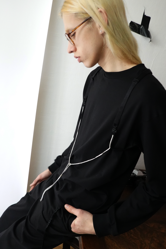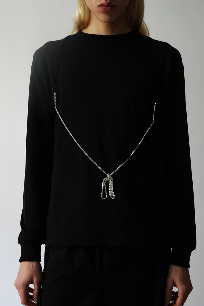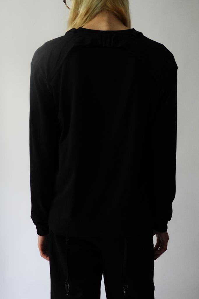 Black Long-sleeve T-shirt with bras straps at the top of the back and crystal straps