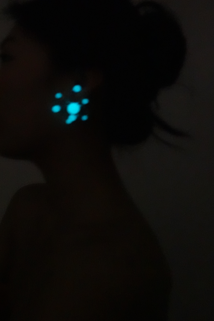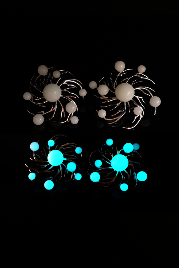 Sterling silver 925 with light green luminous stones which shines in the dark after absorbing light.